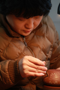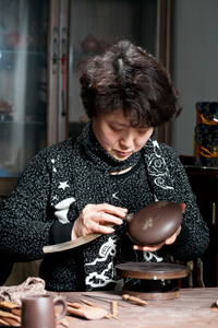 《三足狮鼎壶》等,这一系列作品也多次获奖,被社会各界人士收藏。《三足如意壶》被宜兴博物馆馆藏,《宇宙龙》被苏州工艺美术博物馆收藏。2010年4月被邀园区“爱涛会所”,任会所陶艺“艺术总监”,在那里定期举办紫砂作品的展览,陶艺现场制作表演,和紫砂收藏爱好者的心得交流。
