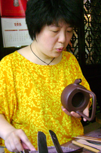 在紫砂厂研究所,与曹燕萍、恽益萍、张志强同处一个工作室,其间虚心向同行请教、学习,刻苦钻研制壶技术。创作的第一把壶《雯珠》即受台湾客商好评,并被市场接受。这期间创作的《圆雯》壶、《凤鸣》壶、《三足如意》壶,均被客户订购,作品的市场影响力不断提高。