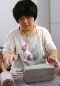 多年的学习和积累,鉴壶制壶能力不断提高。后又拜师何道洪陶瓷艺术大师学习传统壶的制作技艺,拜师吕尧臣工艺美术大师学习吕氏现代绞泥技法,承古取今,努力使自己创作的作品雄健而严谨、流畅而规矩、古朴而典雅、工精而灵秀。2006年以来本人在创作《红了樱桃,绿了芭蕉》作品时,以段泥为原料,完成了温润如玉的壶身,又以红泥捏制了两个晶莹剔透的诱人樱桃,并将以一片芭蕉叶装点在壶身之上,使紫砂壶淡雅怡人,满溢着雨后江南的清新气息,宛如一幅立体江南美景图,永驻人间。在创作《华韵壶》时,壶中的图形装饰则采用绞泥捏搓而成,