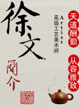 我于2005年到苏州后,在毗邻寒山寺成立徐文陶艺工作室,添墨接友,玉石相亲,融入姑苏文化,汲取姑苏姐妹艺术之精华,结庐寒山,禅茶一味。把那心静悠远的钟鼓一声一声捧出,寄于壶中,先后创作了《渔翁壶》、《金牛嬉水壶》、《仿古石瓢壶》、《仿古水平壶》等,制壶技艺日臻完美。2008年,又在平江区桃花坞创意园大师坊建立“雯宝阁”陶艺工作室,在此期间虚心学习借鉴诸位名师的绘画、石雕、木雕等技法,融入到自己的壶艺创作中,在创作《宇宙龙》壶时,壶身扁圆拟为地球,把手为雕塑龙,集精、气、神于一体,两个茶杯拟作星际。意为中国龙邀游宇宙,把握乾坤。创作《丹桂飘香壶》时,一朵是清香,一朵是芬芳,一朵一朵又一朵,我把姑苏秋境展现在壶上。随后又创作了《嬉狮壶》、《奥运圣火壶》、
